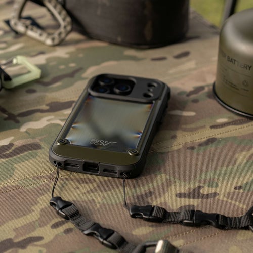 登山やキャンプ・BBQなどアクティブなシーンで幅広く活躍できる、機能・耐衝撃・デザインの3点を兼ね備えたアウトドアテイストのiPhoneカバー。