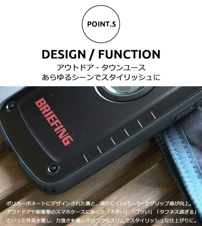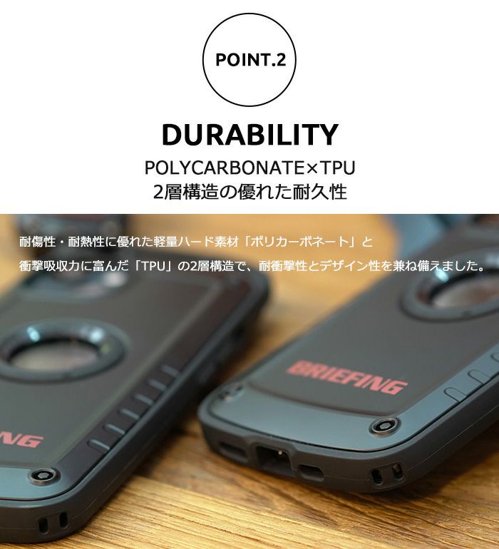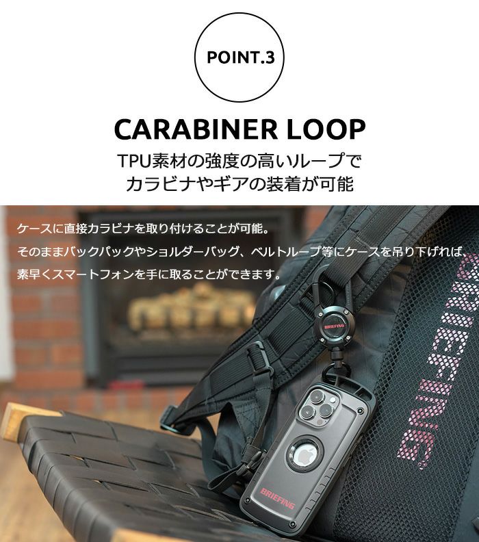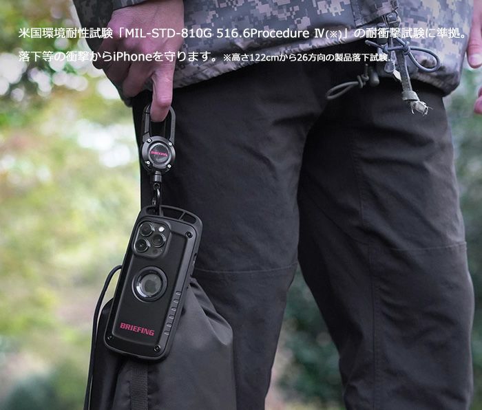米国環境耐性試験「MIL-STD-810G 516.6Procedure Ⅳ」に準拠した耐衝撃仕様の「Shock Resist Case」シリーズよりiPhoneケースとAir Pods.ケースを。また、BRIEFINGのロゴ部分へ高級感あるポッティングを施した特別仕様の『MAG REEL 360』や、異素材三層構造で強度×軽量化を追求したスタイリッシュなハイブリッドカラビナ『TRIAD CARABINER』、スマート収納が可能なバックパックやポーチをラインナップ。