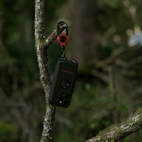 米国環境耐性試験「MIL-STD-810G516.6ProcedureⅣ」の耐衝撃試験に準拠した耐衝撃性能はもちろん、下部に搭載されたカラビナループにはカラビナなどを直接ケースに取り付ける事ができるので、バックパックやショルダーバッグ・ベルトループ等にiPhoneをそのまま装着、登山やアウトドア時の落下防止が可能です。ポートホールから背面のアップルマークが見える構造を採用し、かつての「アウトドア」のイメージにあった大きい・ゴツい・タフネス過ぎる外見を覆しつつもパワフルさを感じさせるスタイリッシュなデザインに仕上げました。登山やキャンプ・フィッシングなどアクティブなシーンで幅広く活躍します。
