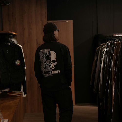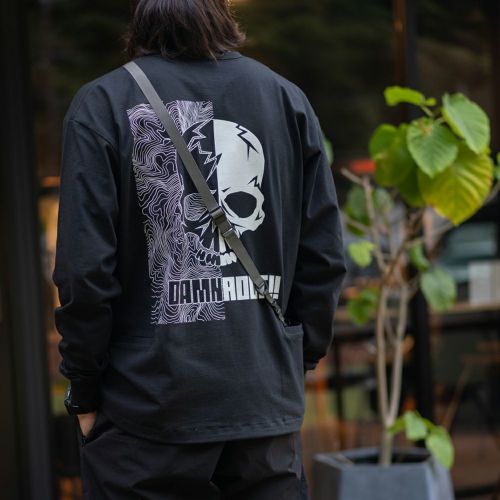 背面両サイドにバックポケットを配した、DAMNGOOD!!×ROOT CO.コラボレーションのオリジナル機能性ロングスリーブTシャツ。