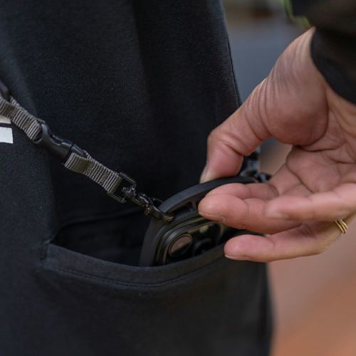 ショルダー掛けのスマホやギアを収納でき、走ったり屈んだりしても揺れやズレ落ちを抑えます。ベルクロ付きのポケットになっていて、収納した物の落下等も軽減します。主張しすぎないバックポケットデザインで、シンプルな印象に仕上げました。