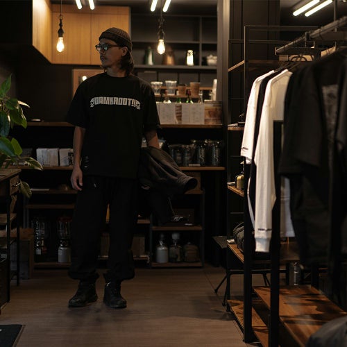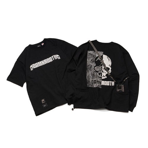 背面両サイドにバックポケットを配した、DAMNGOOD!!×ROOT CO.コラボレーションのオリジナル機能性Tシャツ。