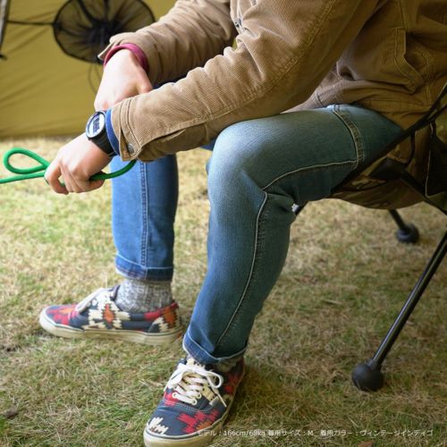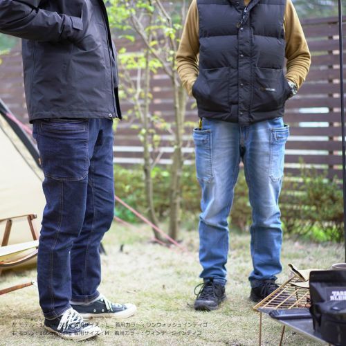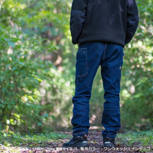 伸縮性のあるデニムなので、アウトドアのアクティブなシーンにも対応し、タウンユースとの相性も良いパンツです。