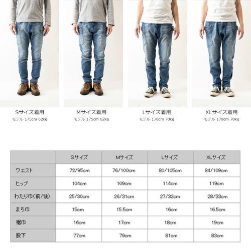 様々なアクティビティに対応する伸縮性のあるストレッチデニムを採用し、シルエットは細めのテーパードデザインを採用。