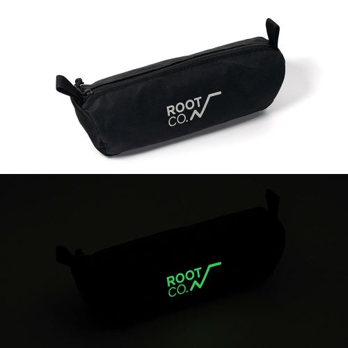 ROOT CO.ロゴはすべて、暗いところで発光するインクを使用した蓄光プリント。蓄光カラーはグローグリーンを採用。