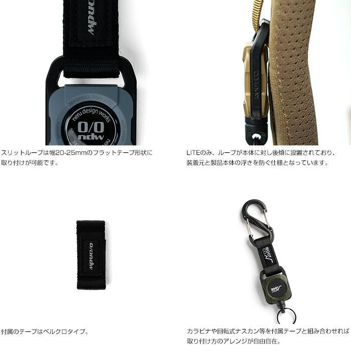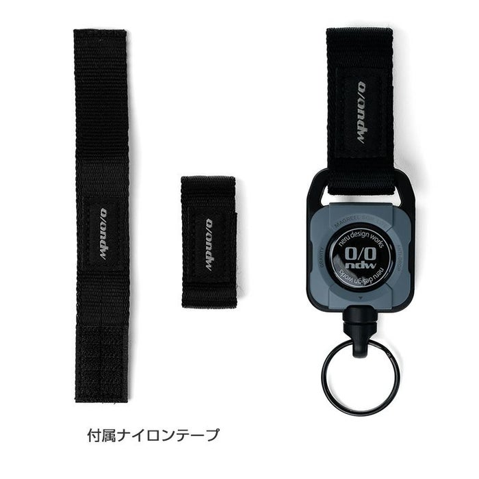 コラボレーションアイテムは、機能性と実用性を兼ね備えたタクティカルなマグネット内蔵コードリールギアホルダー『MAGREEL SQR. LITE』。カラーはner design worksオリジナルグレーを採用し、本体には別注パーツをあしらいました。