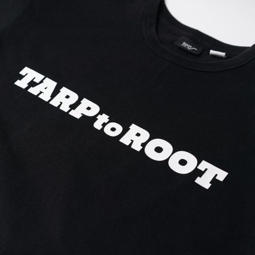 TARPtoTARP×ROOT COコラボレーションモデル。TARPtoTARPオリジナルフォントのコラボロゴをフロントにプリントしました。