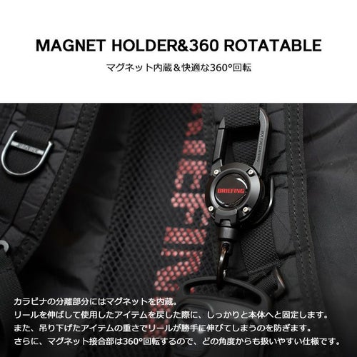MAGNETを内蔵したカラビナ付きコードリールキーホルダー。バックパックやバッグ・ベルトループに取り付け、iPhoneケースや鍵などをぶら下げ可能。大事なアイテムの落下防止や紛失防止に。