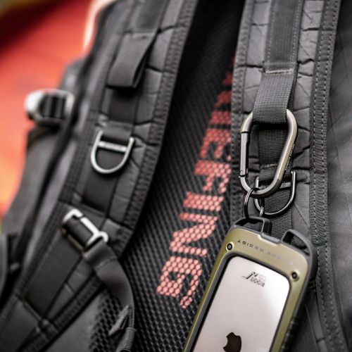 アウトドアシーンと相性抜群なデザインの三層構造のハイブリッドカラビナ『GRAVITYTRIADCARABINER』。ギア感が漂う質感とデザインにより、ROOTCO.のカラビナループ搭載iPhoneケース(GRAVITYShockResistCasePro.および+Hold.)とも相性が良く、カラビナを利用してリュックや登山ザック・バッグ・ベルトループなどにiPhoneケースを取り付けすることができます。また、大事なアイテムの落下防止や紛失防止に繋がります。登山やハイキング・トレッキング・フィッシングなど様々なアウトドアアクティビティではもちろん、海外旅行やフェスなどでも活躍し、財布・ポーチ・アウトドアギア・社員証や家/自転車の鍵をつけての普段使いなど、様々なシーンでオールマイティーにコーディネートが可能です。