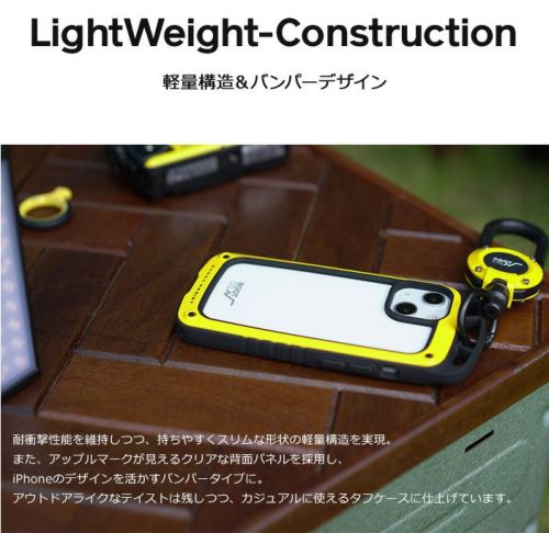 アップルマークが見えるクリアな背面パネルを採用し、iPhoneのデザインを活かすバンパータイプに。アウトドアライクなテイストは残しつつ、カジュアルに使えるタフケースに仕上げています。
