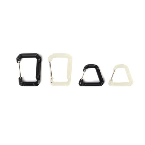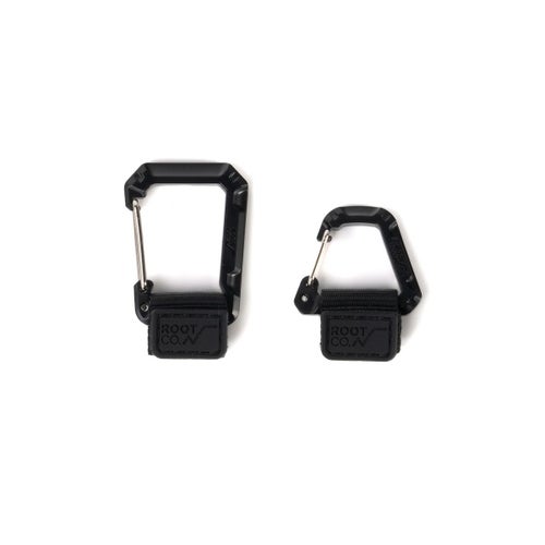 ROOT CO. GRAVITYシリーズのギアと互換性のある、ナイロンショートベルト付きのカラビナ。手持ちのギアに合わせて選べる2サイズに、ブラックカラーと人気の蓄光(グロー)タイプも用意しました。