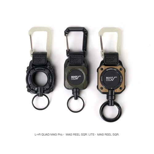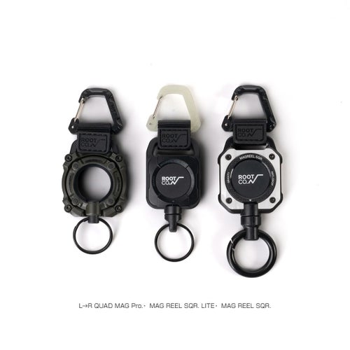 GRAVITY MAG REEL SQR.GRAVITY MAG REEL SQR. LITEGRAVITY QUAD MAG Pro.本体と組み合わせることで機動力をUPするカラビナパーツ。バッグやベルトループ・ザックなどに素早く着脱が可能に。スリットループにカラビナを取り付ける際は、付属のナイロンショートベルトを使用してください。シンプルなカラビナとしても使用可能。