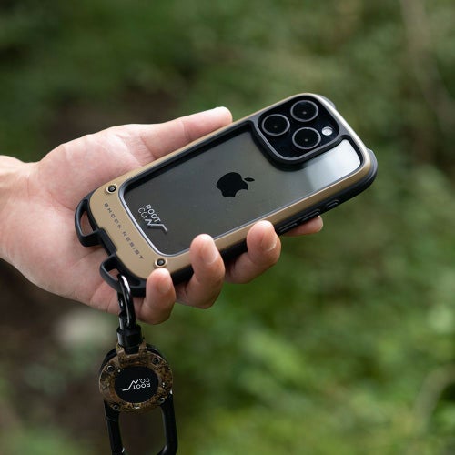 米国環境耐性試験「MIL-STD-810G 516.6Procedure Ⅳ」の耐衝撃試験に準拠した耐衝撃性能はもちろん、下部に搭載されたカラビナループにはカラビナなどを直接ケースに取り付ける事ができるので、バックパックやショルダーバッグ・ベルトループ等にiPhoneをそのまま装着、登山やアウトドア時の落下防止が可能です。