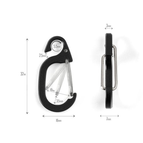 • 本製品はアクセサリーを取り付けるためのカラビナです。クライミング等、大きな荷重がかかる用途にはご利用いただけませんので予めご了承ください。
