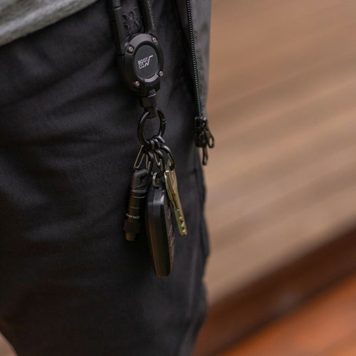 本製品のフック部分にMAG REEL「MAG REEL 360 / SQR.」のリングカラビナを通して『拡張カラビナ』として。さらに小物やギアごとに本製品を1つずつ付けてリングカラビナに吊るしておけば、取り外したいアイテムの着脱もスムーズです。