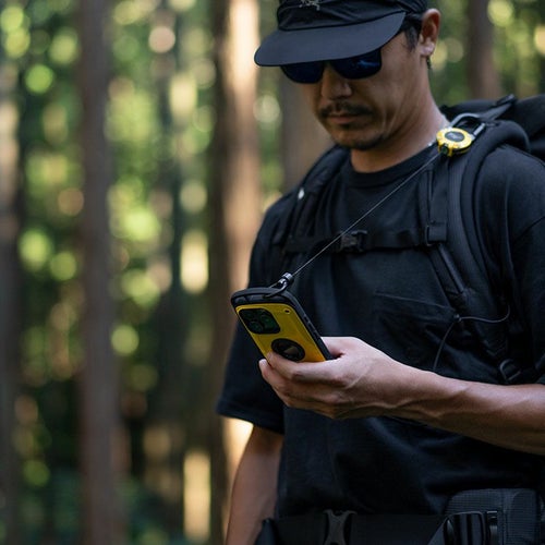 ケース上部に搭載されたカラビナループに、別売りのマグネット式リールカラビナ「MAG REEL 360」スマホショルダーストラップ「UTILITY WEBNING NECK/SHOULDER LOOP」を取り付ける事が可能。もちろんお手持ちのカラビナ等を装着することもできます。