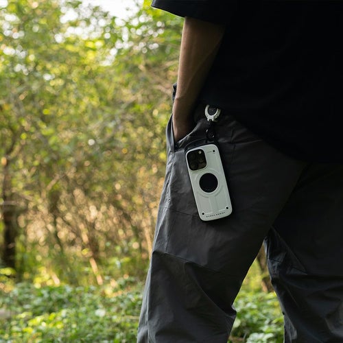 ケース上部に搭載されたカラビナループに、別売りのマグネット式リールカラビナ「MAG REEL 360」スマホショルダーストラップ「UTILITY WEBNING NECK/SHOULDER LOOP」を取り付ける事が可能。もちろんお手持ちのカラビナ等を装着することもできます。