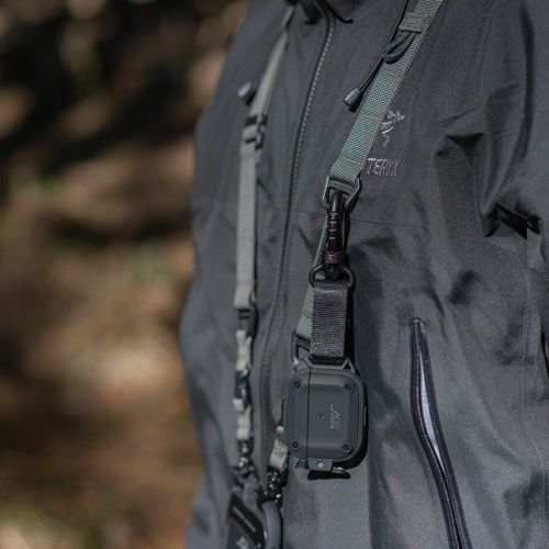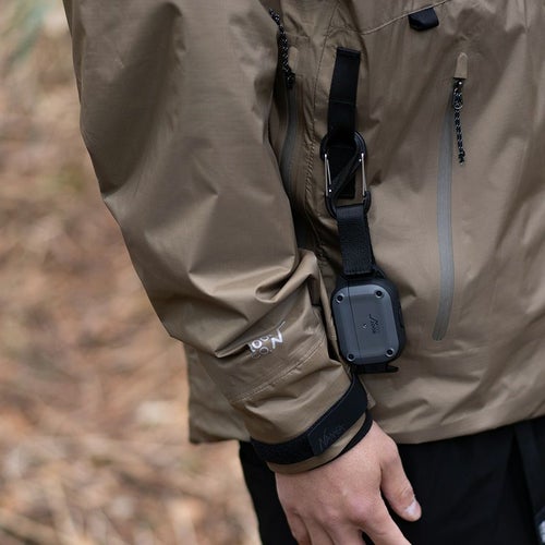 ケース本体サイドに、20mm幅のウェビングテープを取り付け可能なループを搭載。さらに専用のテープ&S字カラビナが付属、持ち運びの際にバッグやベルトに装着ができます。また2重リング等を通せるホールも備えているため、カラビナで吊り下げての使用も可能です。(お手持ちのベルト・テープ・ループ等もご利用いただけます。)
