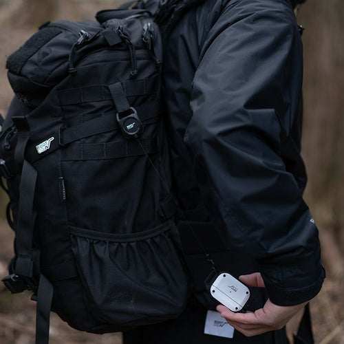 商品付属のS字カラビナとテープを使えば、バッグやザック・ベルトループなどに装着していつでも持ち運びが可能。