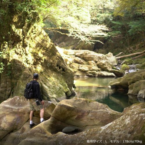 メッシュライナー付きの仕様で、水辺のアウトドアシーンで着用可能です。