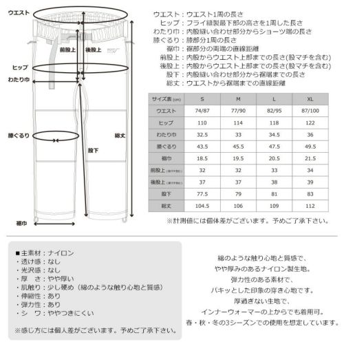 ストレッチ性のあるナイロン生地を採用し、動きの多いアウトドアアクティビティでも優れた機動性で、膝の曲げ伸ばし等もスムーズに行えます。
