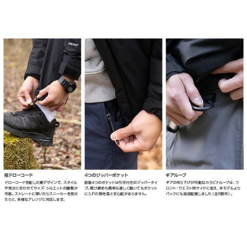 - ROOT CO.のパンツでは定番のアイデンティティである独自のギミックを搭載し、使いやすさ・履きやすさを強化。前モデルからギアループも1箇所追加しています。