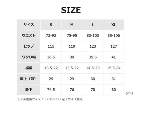 コーディネートしやすいテーパードシルエット。ウエストゴムに加え、ジッパーフライ仕様にナイロンベルトも搭載しました。
