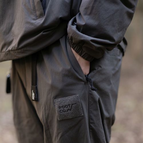 ギアループや各種ポケットなど、ROOT CO.独自のギミックを取り入れています。また、裾にはファスナーを設け、シルエットの調整が可能です。