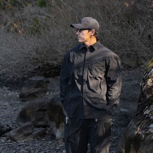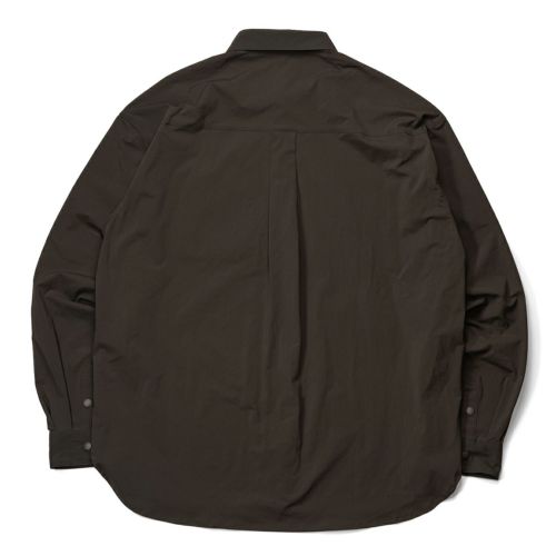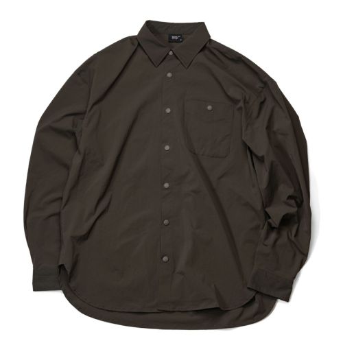2026年新作、伸縮性に優れたナイロン素材を採用し、アウトドアシーンから日常まで着用できるボタンシャツ『PLAY STRETCH UTILITY Long Sleeve Button Shirts』。スナップボタンにのみロゴをさりげなく配した、ミニマルなデザインです。