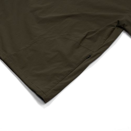 ボディサイドにコンシールファスナー付きのシームポケットを配した、シンプルなROOT CO.オリジナルナイロンシャツです。ROOT CO.定番の「UTILITY BACK POCKET T-Shirts」よりも身巾を少し大きくデザインしたワイドシルエット。裾元両サイドのドローコードでシルエット調整が可能です。