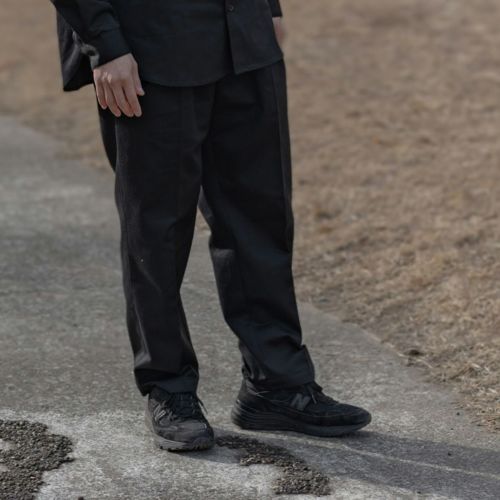 フロントにタックを入れたゆとりのあるテーパードシルエットのツータックパンツ。全体的にゆったりとしたルーズシルエットで、動きやすく快適な履き心地です。