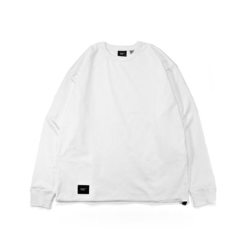 程良いサイズ感でざっくりした風合いの1着です。フロント右下にワンポイントとなる織りネームを配置。