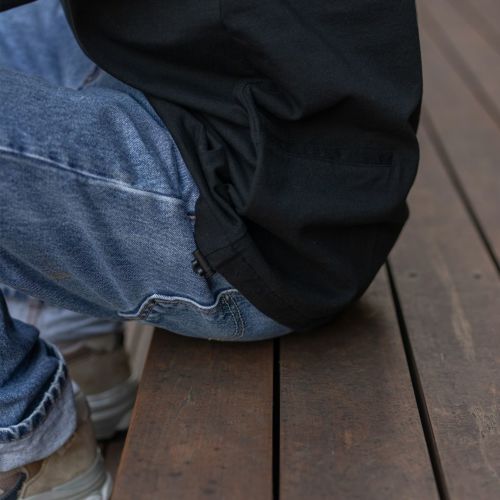 背面両サイドにバックポケットを配したROOT CO.オリジナルの機能性ロングスリーブTシャツ。定番「PLAY UTILITY BACK POCKET Long Sleeve T-Shirts」の胸ポケットを省いたミニマルなデザインです。