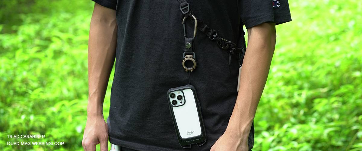 iPhoneケース×カラビナなど、同カラーでのコンビネーションも可能です。
