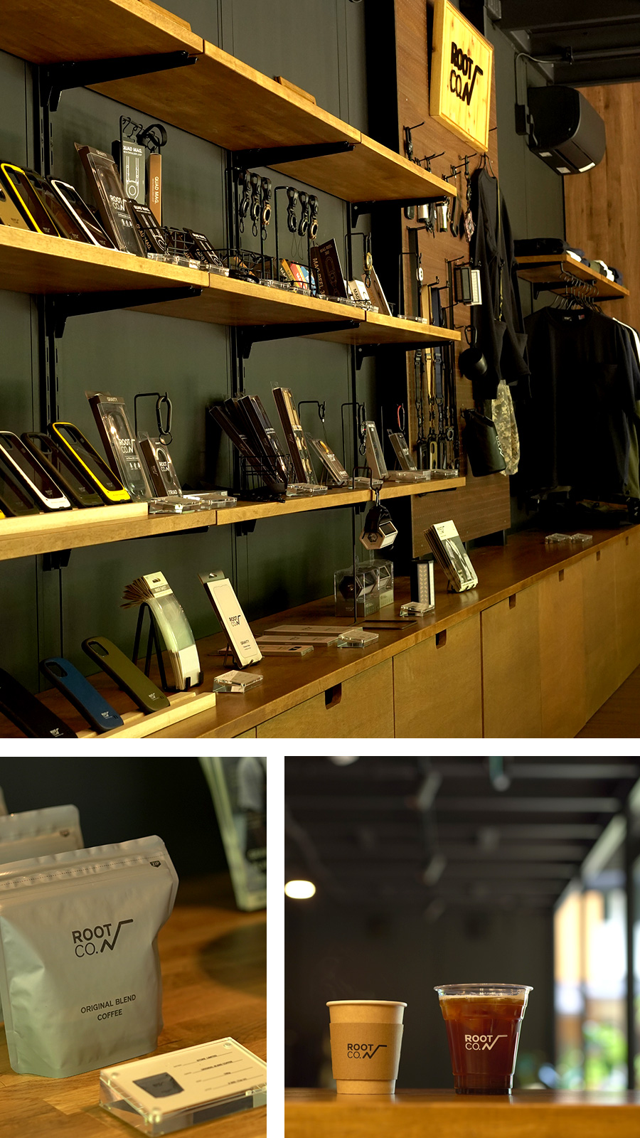 カフェスペースを併設したROOT CO.製品を実際に手に取っていただけるショップです。